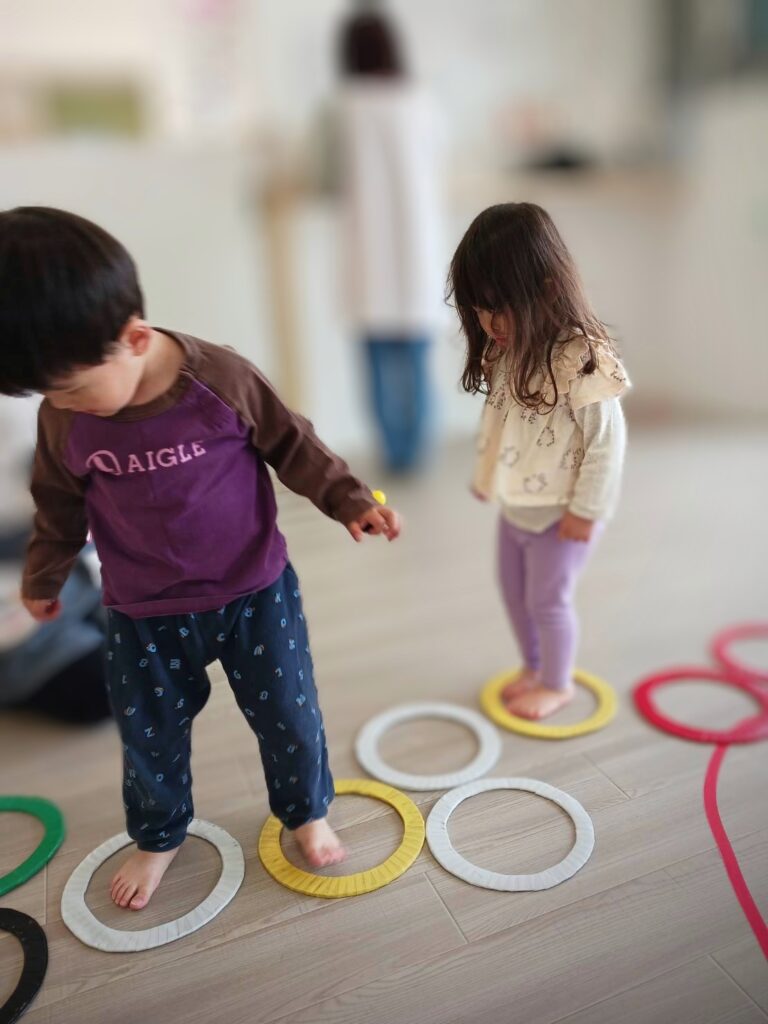 室内あそびでは、センサリーマットと風船トランポリンで初めて