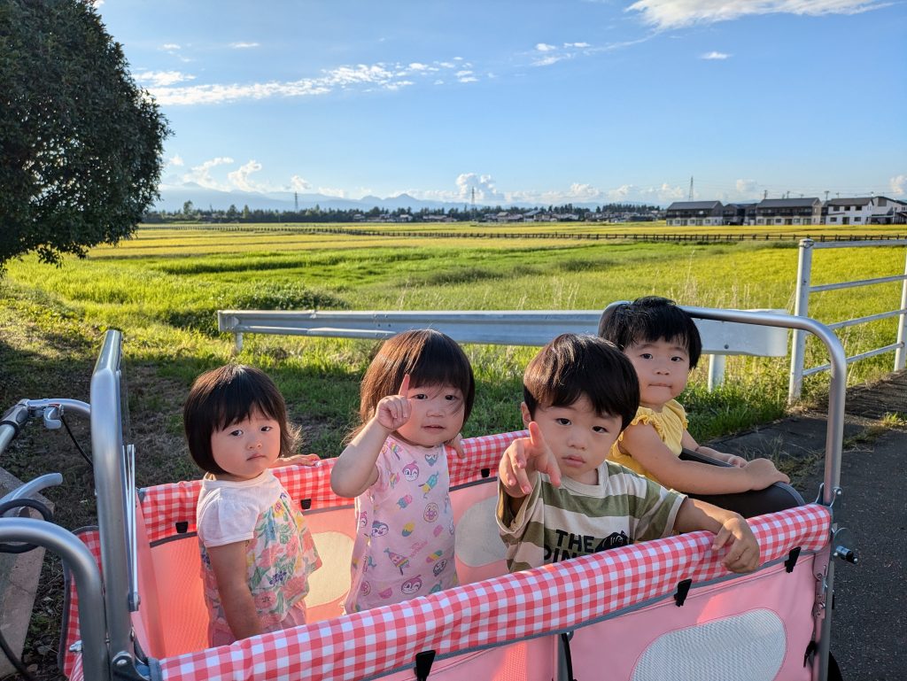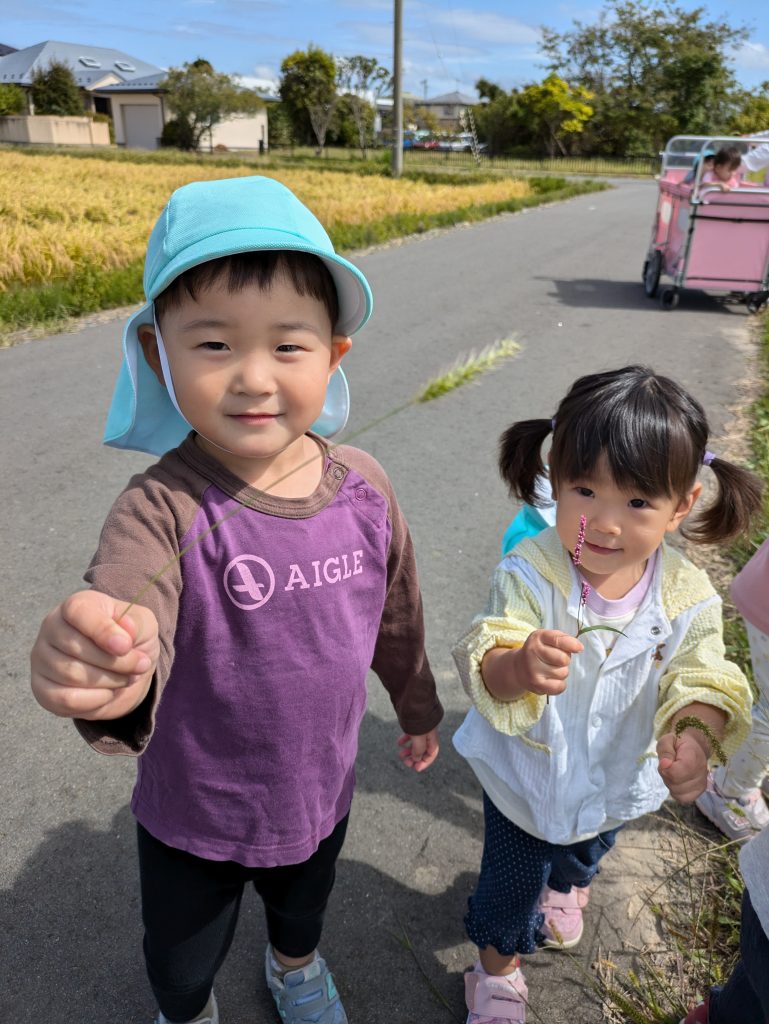 稲刈りをみたり、トンボを捕まえたり、秋を探しに子どもたちもワクワクです。