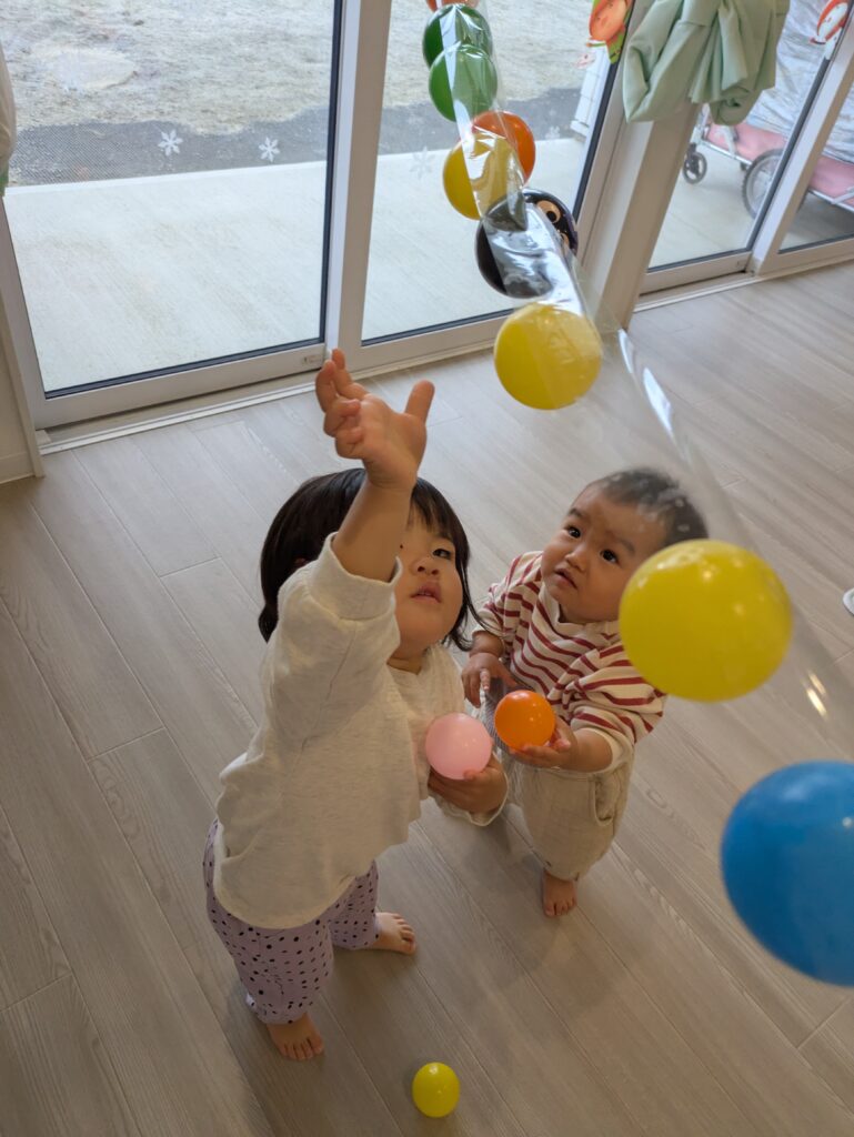 楽しみました♪空いてる所を探している姿や、ボールをくっつけるために探しに行ったり